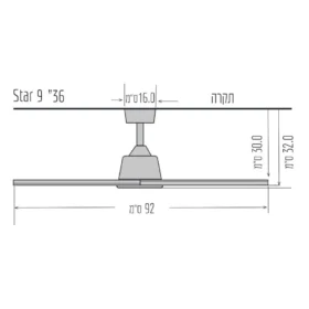מאוורר תקרה סטאר 9 ״36 40 וואט תאורה ושלט