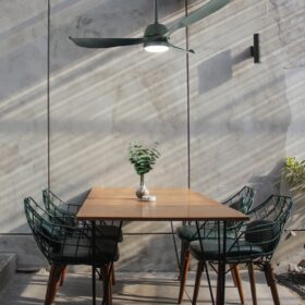 מאוורר תקרה לפרגולה/מרפסת 56″ ATLANTA שחור כולל תאורה, מנוע DC