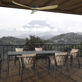 מאוורר תקרה לפרגולה/מרפסת 56″ ATLANTA שחור/עץ כולל תאורה, מנוע DC