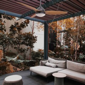 מאוורר תקרה לפרגולה 50″ DOLFIN כולל שלט ותאורה בצבע שחור/עץ, מנוע DC