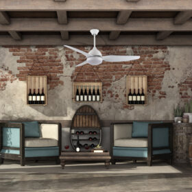 מאוורר תקרה לפרגולה 50″ DOLFIN כולל שלט ותאורה בצבע לבן, מנוע DC