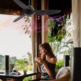 מאוורר תקרה לפרגולה דגם דולפין שחור עם רמקול ושלט